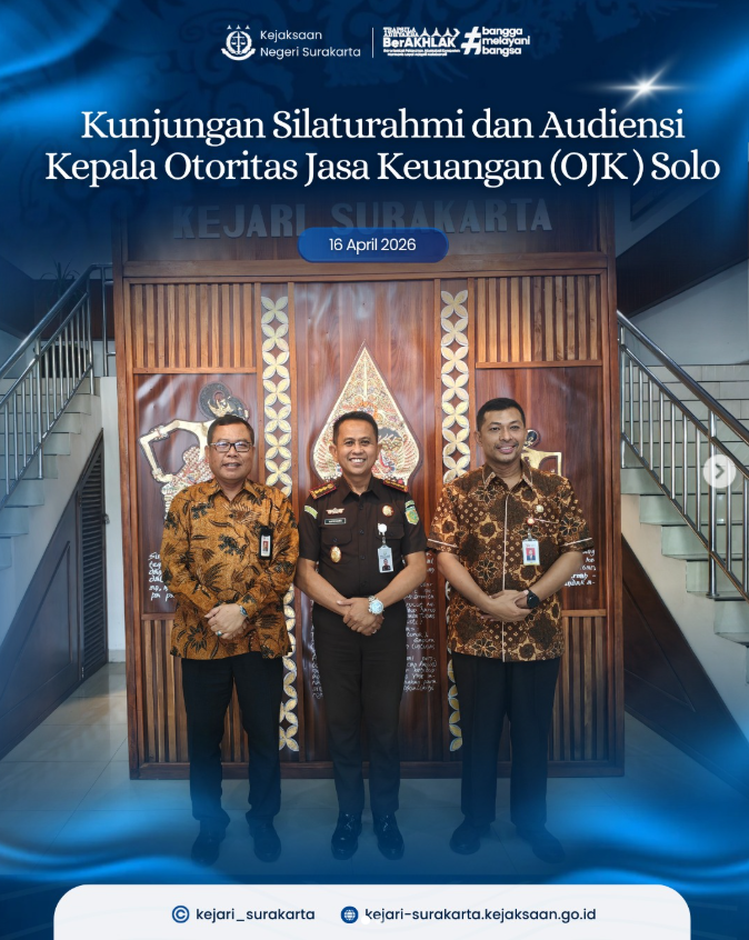 Kejaksaan Negeri Surakarta menerima kunjungan silaturahmi dan audiensi dari Kepala Otoritas Jasa Keuangan (OJK) Solo